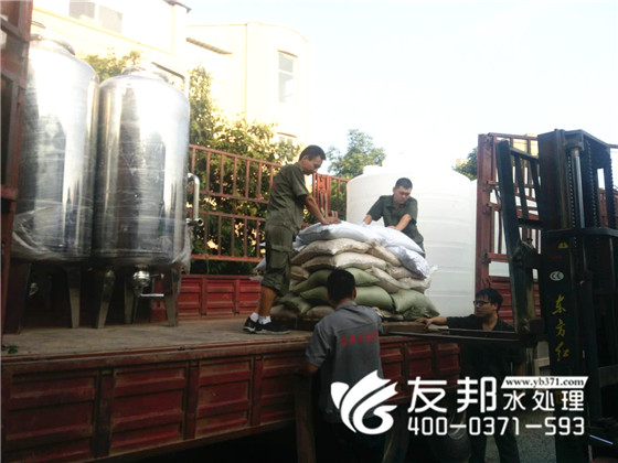 在這驕陽似火,揮汗如雨的季節(jié),大清早就是30多度的高溫,鄭州友邦的師傅們沒有松懈,依然在堅持裝車發(fā)貨。這是發(fā)往河北飼料廠的10噸純凈水設備。