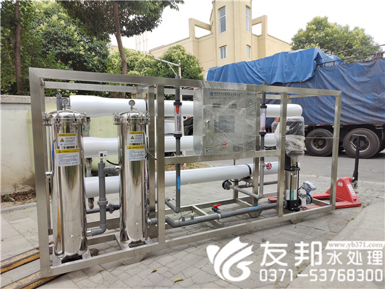接下來裝車發(fā)貨的是一套15噸雙級反滲透設(shè)備。反滲透設(shè)備是采用膜法分離的水處理技術(shù),是自然界滲透現(xiàn)象的逆過程(對含鹽水以外加推動力克服滲透壓而使水分子通過膜的逆向滲透過程)。反滲透水處理工藝基本上屬于物理脫鹽方法,它在諸多方面具有傳統(tǒng)的水處理方法所沒有的優(yōu)點(diǎn)。反滲透是在室溫條件下,采用無相變的物理方法將含鹽給水進(jìn)行脫鹽、純化。目前,超薄復(fù)合膜元件的脫鹽效果好,并可同時去除水中的膠體、有機(jī)物、細(xì)菌、病毒等。